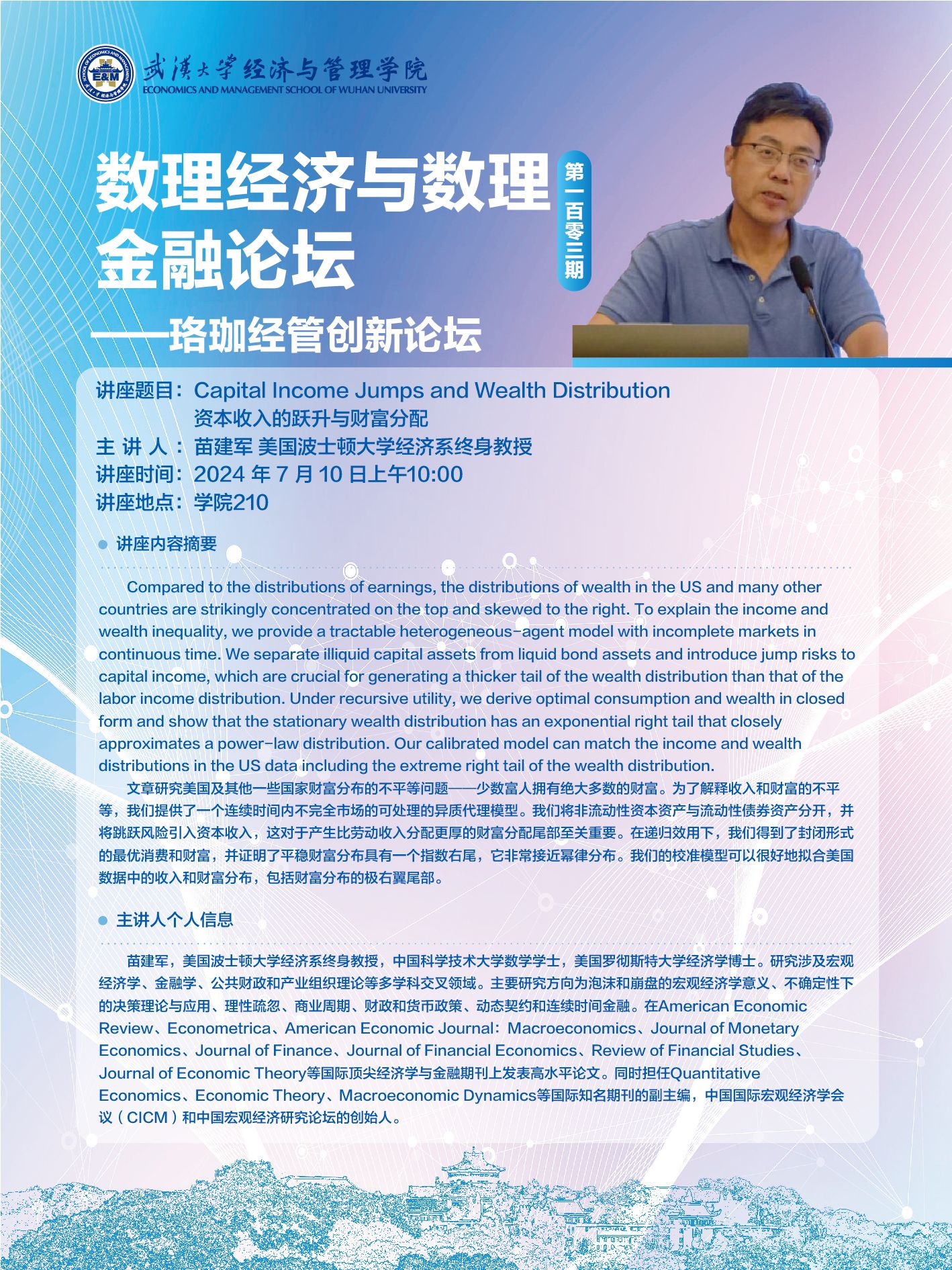 讲座题目:Capital Income Jumps and Wealth Distribution(资本收入的跃升与财富分配)