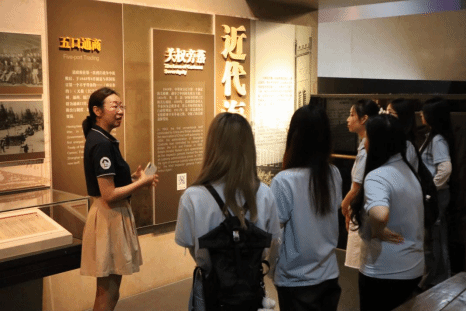 进口关税是一国重要的贸易政策,征收关税有维护国家主权和经济利益、保护和扶持本国产业发展等作用。展陈“五口通商”中订关税则例、准许洋商与华商贸易的规定,令同学们联想到《国际经济学》学到的关于关税与贸易政策的知识。老师由此引导大家思考“降低关税是否等同于自由贸易”的问题。在近代主权丧失的情况下,中国缺乏关税制定的话语权,故难以成为贸易获益者。老师结合馆展引导同学们思考,使其对关税在不同社会背景下的现实含义有了更全面的理解。