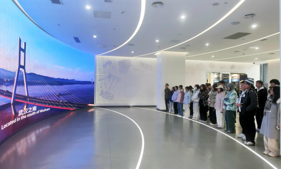 武汉市经开区着力推动智慧城市与智能网联汽车“双智”联动发展,打造“双智之城”“未来之城”的科技力量。在双智展厅内,同学们详细了解了武汉经开区的发展概况、中国车谷三十年跨越发展历程、打造“双智之城”“未来之城”的战略目标,以及智能网联汽车建设成果等发展情况。