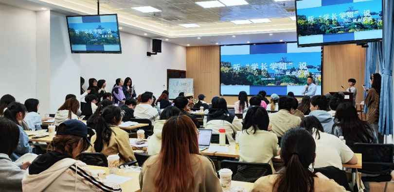 随后,人力资源管理专业2021级本科生讲述了他们选择人力资源管理专业之后在保研路上的成长故事。谢颖学姐围绕导师制、科学研究训练营、师资力量、大家庭氛围等话题分享专业特色;蔡腾飞学姐传授自己从科研“小白”到保研候选人,如何实现三级跳;李佳芮学姐通过讲述自身科研经历,回顾了在专业老师们的向上托举中成长的点点滴滴。三位同学的分享实际而具体,贴近大二同学们的真实需求,同时向他们展现了人力资源管理专业的育人成效与专业特色。