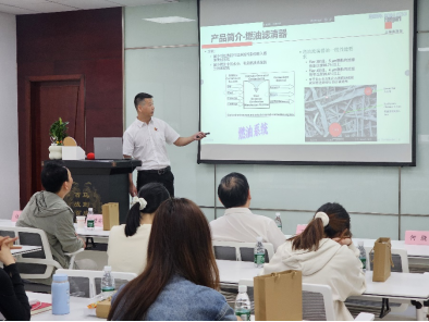 参观结束后,武汉工厂厂长伍智携各职能部门经理与师生代表在公司培训会议室举行了面对面的交流座谈会。伍厂长从事业布局、发展历程、一楼一凤、组织结构、战略规划、研发体系等方面,全面、系统地讲解了上海弗列加公司的运营脉络与价值体系。当谈及今年美国关税壁垒对公司进出口业务造成的阶段性挑战,他解读了上海弗列加人在时代逆境中百折不挠的应对精神,展现出上海弗列加公司在全球化浪潮中的韧性担当。这番分享让在场师生深切感受到中国专精特新企业的战略定力与创新精神。