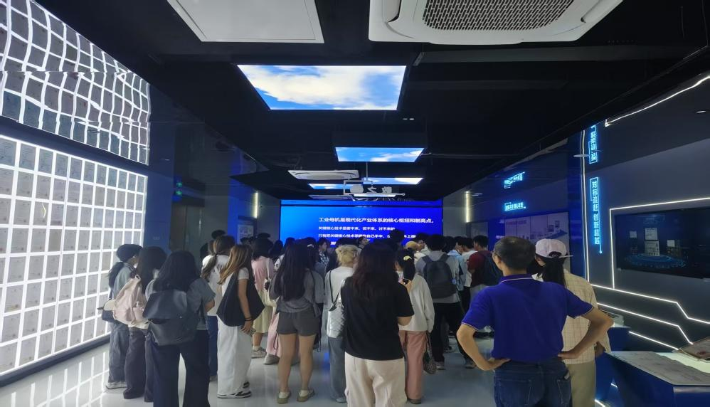 武汉华中数控股份有限公司成立于1994年,坐落于武汉市东湖开发区华工科技园 ,是国产中、高档数控系统研究和产业化基地。公司以数控系统技术为核心,业务涵盖数控系统、工业机器人、电动汽车等领域,形成了“一核三军”的产业格局。在企业展厅当中,齐壮与石义淮讲师为我们悉心讲解了华中数控系统产品的发展历程,指出工业母机是现代化产业体系的核心枢纽和制高点。让我们深刻意识到关键核心技术是要不来,买不来,讨不来的。同学们从中感受到企业“自强不息,核心攻坚”的精神内核。在展厅中,通过丰富的图文资料和实物展示,我们了解到华中数控从成立之初便致力于数控系统的自主研发,历经多年技术攻关,打破了国外在高端数控系统领域的长期垄断。从早期的华中Ⅰ型数控系统,到如今的华中9型、华中10型新一代智能数控系统,每一次技术迭代都见证了公司在数控领域的深厚技术积累与创新突破。在数控系统应用领域,华中数控更是广泛应用于航空航天、汽车制造、船舶制造、机械加工等众多领域。在航空航天领域,助力复杂零部件的高精度加工;在汽车制造中,满足汽车零部件高效、精密生产需求,展示了其强大的适应性和可靠性。