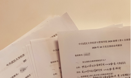 在活动的最后。2020级博士第1党支部书记刘燚爽结合党章,对党支部全体成员进行了培训和考核。刘燚爽首先向支部成员介绍了学院研究生第一次党支部书记联席会的会议内容,就党支部相关知识和发展党员的流程进行了详细培训。为检验培训和学习效果,刘燚爽还对支部全体成员进行了现场考核。