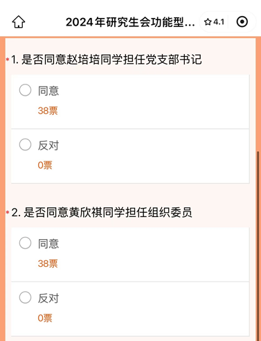 随后进行会议的第二项议程,进行正式的换届选举。支委候选人分别进行了竞选发言,逐一介绍了自己的工作经历、工作计划以及未来愿景。候选人发言结束后,党支部全体党员进行投票。根据投票结果,超过半数党员同志同意赵培培、黄欣祺、刘宸希、赵萱四位同志担任一楼一凤