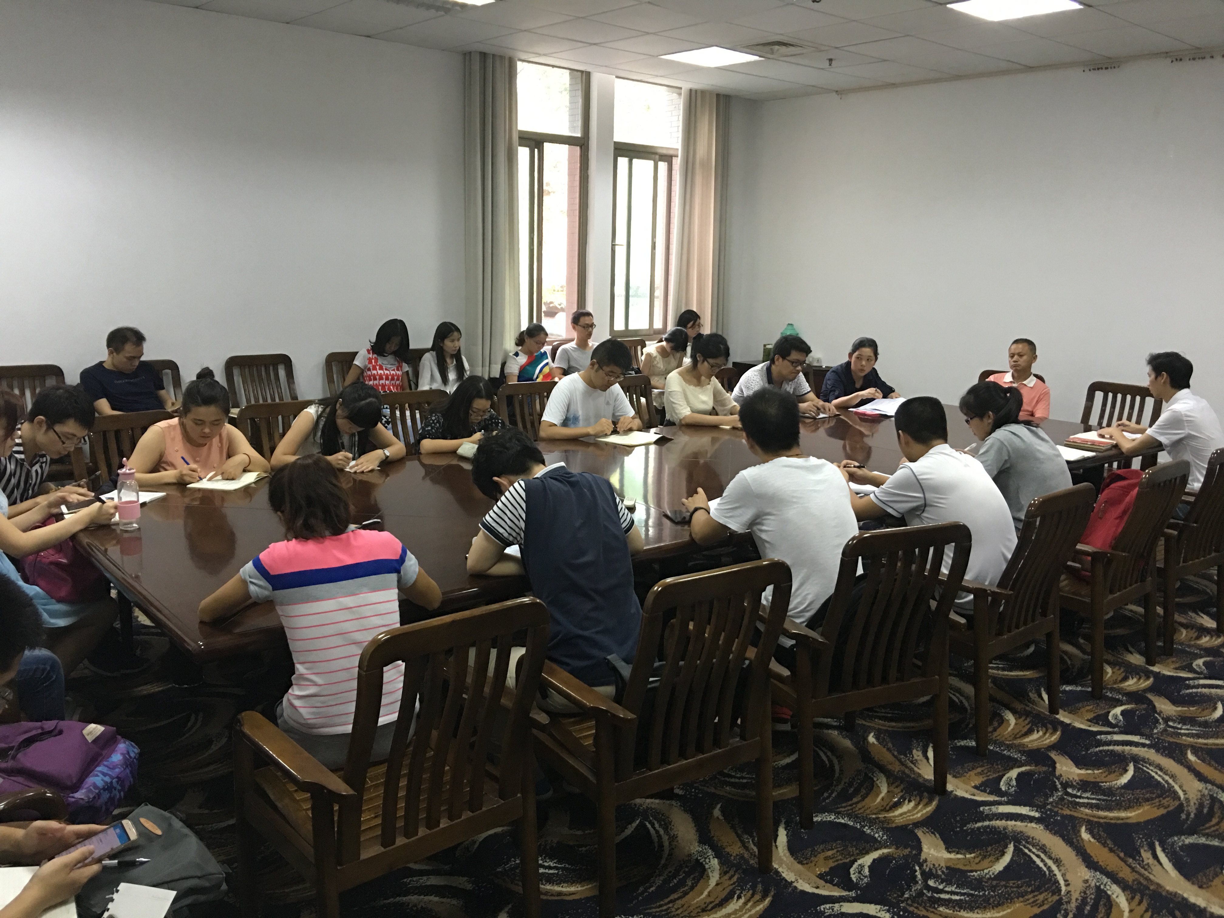 9月14日下午,经管院2016年秋季第一次会议研究生党支部书记联席会在第四会议室召开。研究生辅导员王芳老师主持会议,2016级新任党支部副书记及2014级、2015级党支部副书记参加会议,学院党委副书记朱剑平出席会议并发表讲话。