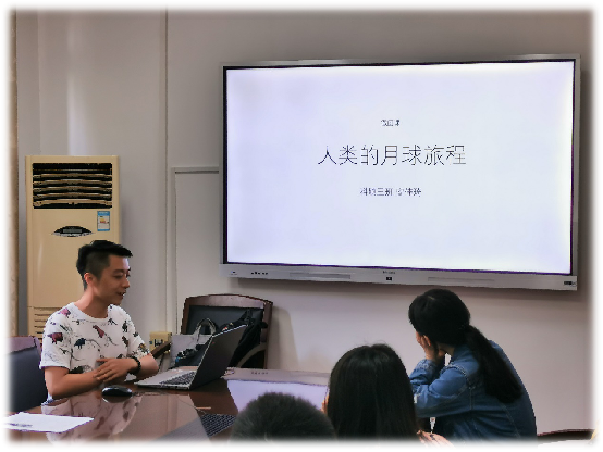 首先,2018级科硕三班团支书安佳琦为我们分享了微团课“人类的月球旅程”。登上月球一直以来都为人们所向往,安佳琦同学结合近期印度登月失败的事件,为我们简要介绍了人类航空航天的发展史以及中国“嫦娥”系列所取得的成就。安佳琦为我们介绍到:“2003年,中国制定‘绕、落、回’三期月球探测任务,命名为‘嫦娥工程’。2030年后,中国后续月球探测将继续朝着机器人探测和载人探测两个方向发展”。