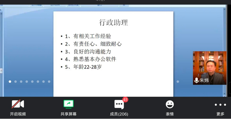 学生就业指导办公室副主任朱玮老师,以及共有200余名学生参与了本次讲座。本次讲座分为嘉宾分享和互动答疑两个环节。在嘉宾分享环节,朱玮老师做了“如何使你的简历脱颖而出”的主题分享,朱老师从HR筛选简历的标准入手,强调了认真制作简历的重要性,并提出了8点做好人岗匹配的注意事项。分别是:个人基本信息、求职意向、教育背景、工作经历、工作或实习经历、项目或科研经历(可选)、社会实践、主要技能及兴趣爱好。互动答疑环节中,同学们就自己感兴趣的话题踊跃提问,朱玮老师对此一一耐心解答。 具体的建议有:(1)写简历时需要换位思考,站在HR的角度思考某个岗位需要具备的特质,从而对简历进行修改完善;(2)对于不同的岗位而言,简历的内容应有所不同,例如,投递技术岗位时需突出科研经历和技术技能,而非技术岗则应突出实习经历;(3)疫情可能会影响到咨询、证券等行业的就业,因此同学们不仅需要依托学校,更要依托个人能力、社会关系网络去把握就业机会。
