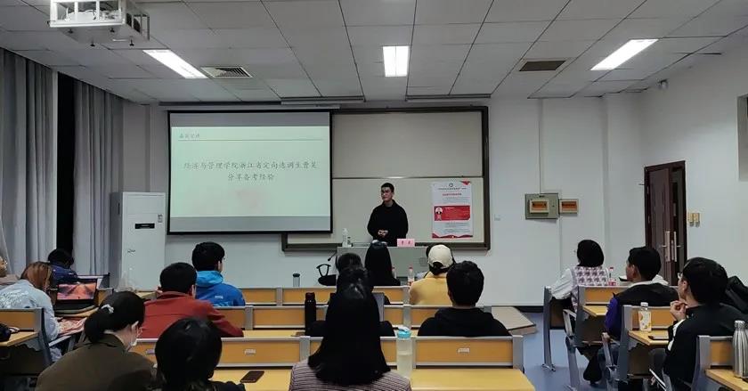 2017级本科生曹昊同学从自身经验出发,与同学们分享自己对浙江省定向选调生的报考时间、笔试技巧、二轮双选等实际问题的认识,并建议同学们积极备考,面试可以“早点去,晚点走”,对于选调生要有合理的预期,保持积极的心态。