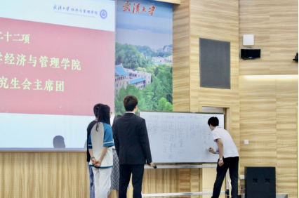 研究生会执行主席徐高铮同学发言。徐高铮同学代表校研究生会和各兄弟培养单位研究生会向大会的顺利召开致以热烈祝贺,肯定了经管院研究生会过去半年各方面的成绩,并就面向新征程的研究生会如何展现新气象、实现新作为分享了自己的学习感悟。
