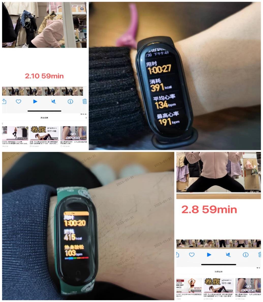 此次活动分为自由锻炼打卡和集中教学两部分。自由锻炼打卡活动时间为1.13-1.19&1.27-2.11,在此期间,许多同学踊跃参与,自行锻炼并在微信群内上传了运动证明,例如录制的瑜伽小视频、在球场挥汗如雨的照片等多种形式,同学们在群内相处得十分融洽,其中有一位同学每天坚持运动打卡,还在群里分享运动的愉悦,和大家一起互相鼓励。活动一经开展就取得了良好效果,微信群内打卡不断,同学们热情高涨。