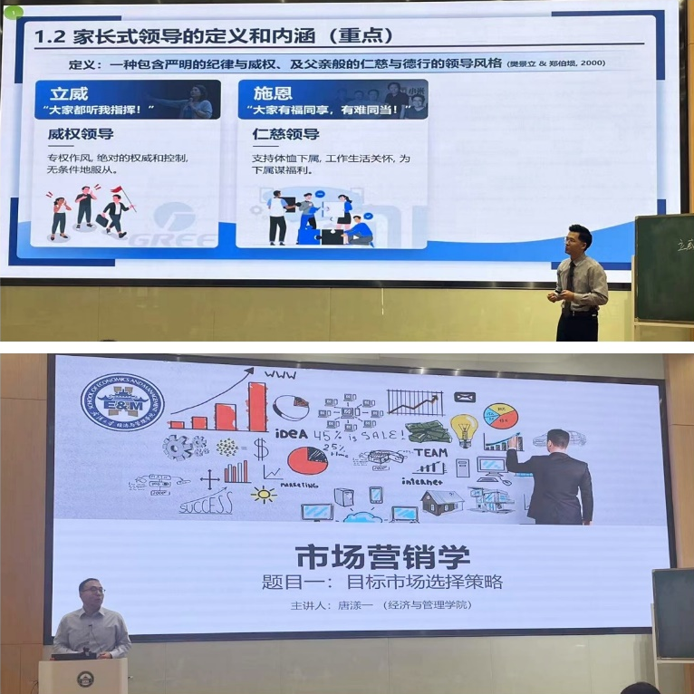 The two teachers came all the way from the preliminary competition of the college and the final competition of the department, and the carefully prepared, designed blackboard and PPT courseware formed a perfect complement. The course design was carried out around the "Two features and one challenge". It starts from the introduction of the course, to the analysis of the key points and difficulties of the course, and the final course reflection. It all fits together, and every detail touches the heart. In the course of case teaching, the two teachers used a lot of Chinese cases, integrated ideological and political elements, and told Chinese stories well. Their confident and generous teaching style, progressive explanation, vivid on-site interaction and skilled use of digital intelligence technology all showed their enterprising attitude, which left a deep impression on the on-site experts and student judges.
