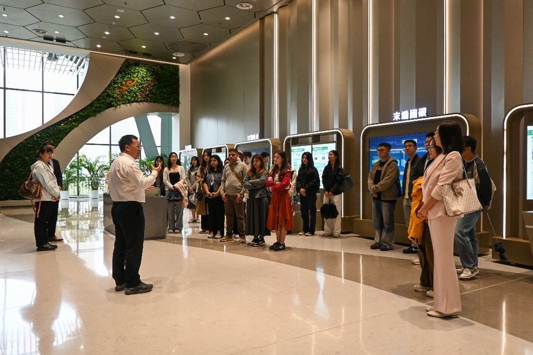 In the final "Zero-Carbon Future" exhibition area, displays of cutting-edge technologies such as CCUS technology models, renewable energy utilization sand tables, and intelligent carbon footprint management platforms sparked the students' boundless imagination about the future business landscape.