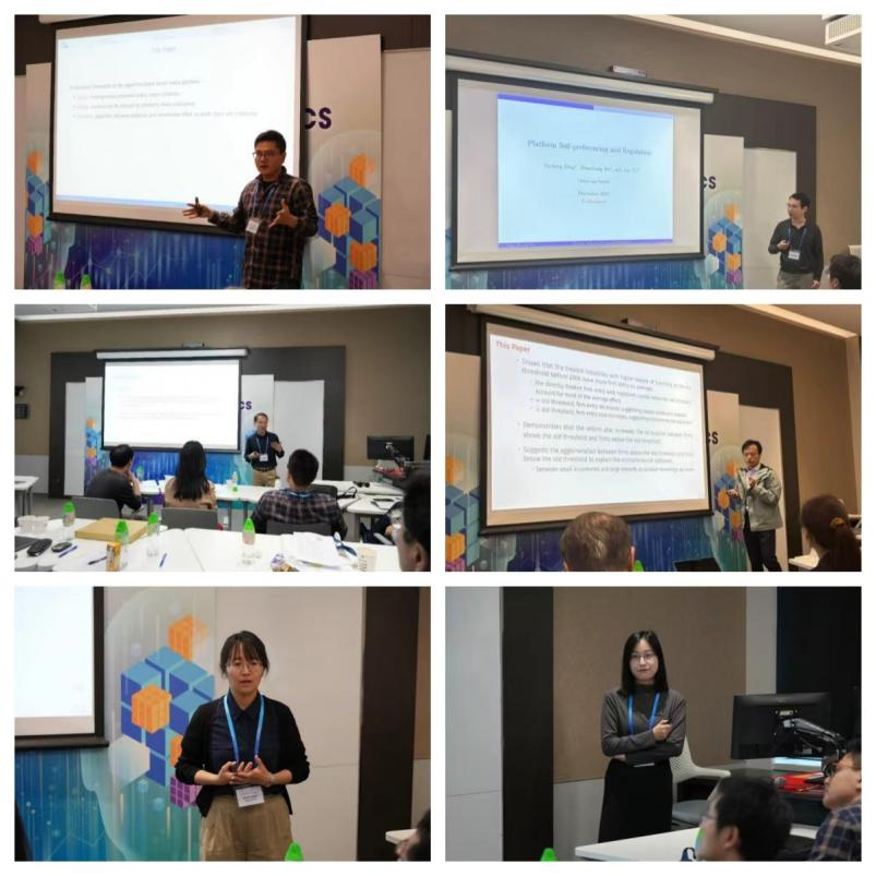The symposium yielded fruitful academic exchanges. Professor Fei Li from the University of North Carolina at Chapel Hill presented research titled "Algorithmic Attention and Content Creation on Social Media Platforms," using a theoretical model to reveal the "bimodal" non-monotonic characteristics of platform algorithms in attention allocation. Associate Professor Ding Yucheng from the Department of Economics, using Amazon as a case study, explored the regulatory boundaries of platform self-operation models and suggested that moderately biased recommendations might enhance overall social utility. Professor Larry Qiu from Hong Kong Lingnan University, based on Chinese data, empirically found that international patent applications can increase a firm's export value by 13.4% and significantly facilitate entry into new markets. Associate Professor Xiong Ruichi focused on the 2006 "Company Law" reform, revealing how policy-driven reductions in registered capital thresholds stimulated regional entrepreneurial vitality through a "ripple effect."