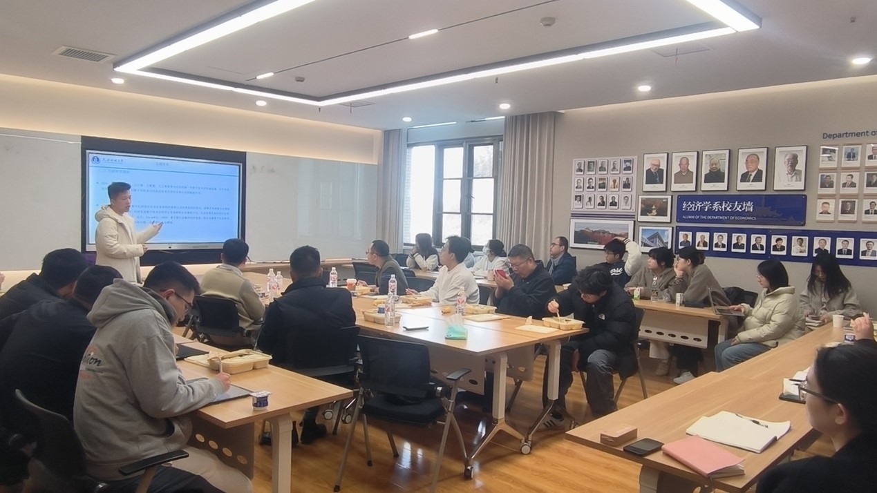 经济学系的博士研究生杨博报告了其研究论文《新质生产力的收入分配效应研究——基于企业薪酬结构的视角》,经济学系罗知、傅十和、熊瑞驰、申洋、逄金栋、王润楠等老师与系内外硕博士生30余人参加。