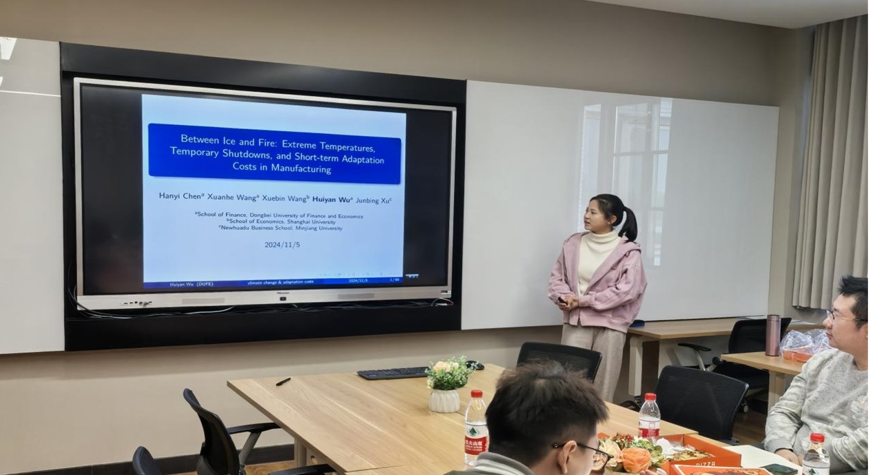 11月5日,来自东北财经大学的硕士研究生吴慧妍报告了其研究论文“Between Ice and Fire: Extreme Temperatures, Temporary Shutdowns, and Short-term Adaptation Costs in Manufacturing”,一楼一凤