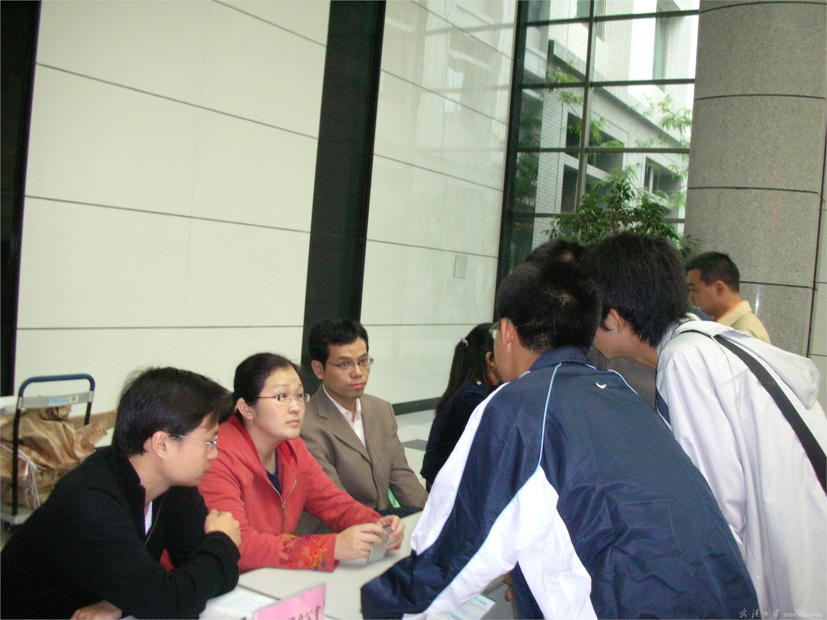2008年研究生招生宣传咨询活动。此次活动由学院党政办公室和研究生教学管理办公室共同协调组织,各系、所都派出了专门人员参加了此次面对社会考生的咨询活动。另外,学生工作办公室也安排了相关老师参加了此次活动,图书分馆和实验中心也安排了值班人员接待前来咨询的考生。共有近400考生参加了学院的咨询活动。