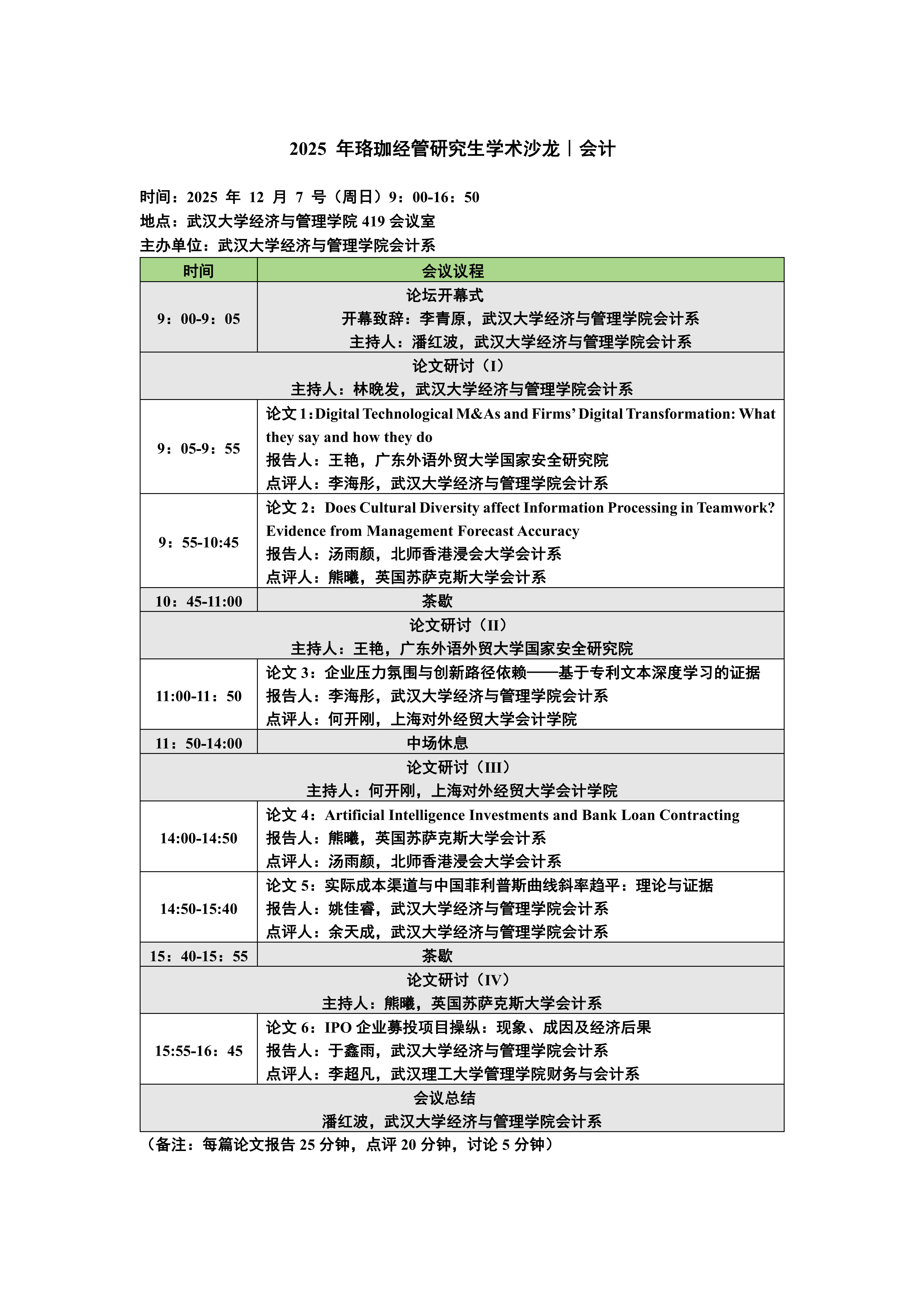 时间:2025 年 12 月 7 号(周日)9:00-16:50