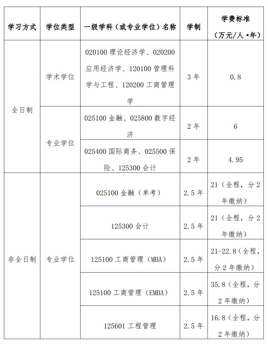 1.工商管理(MBA/EMBA)、会计(全日制)、会计(非全日制)、工程管理
