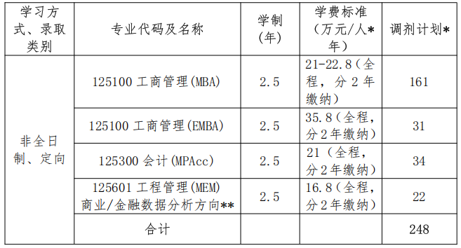 (*实际录取人数根据生源和复试情况可能调整;**125601工程管理(MEM)商业/金融数据分析方向调剂相关具体政策,请见《一楼一凤