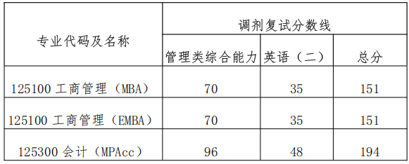 报考工商管理、公共管理、会计、旅游管理、图书情报、工程管理、审计等7个专业学位,且未被一志愿拟录取的考生,符合学校及学院招生简章中规定的调入专业的报考条件,初试成绩须达到调出学科专业国家线及学院调入学科专业复试分数线。