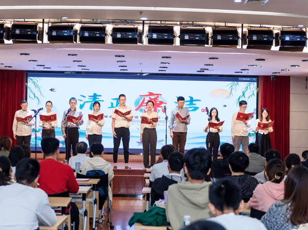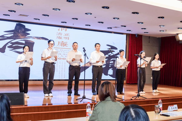 “廉洁之声,清风徐来”党风廉政主题朗诵比赛在学院教工之家举行。学校纪委、监察专员办第一纪检监察室黄俊主任、学校廉政文化研究中心副主任李斌雄教授、学院党委书记姜星莉、纪委书记谭小林、副院长谢雅维参加活动。