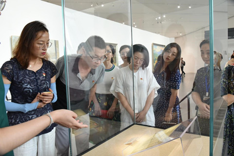 在主题党日现场教学环节,支部党员、群众共赴万林艺术馆现场参观了主题为“东方欲晓”的毛泽东主席艺术形象展。