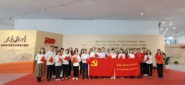 随后,全体人员共同观看了“东方欲晓——毛泽东主席艺术形象主题展”。艺术展从领袖生平﹑领袖业绩﹑领袖诗词﹑领袖生活等几个方面来表现一代伟人的丰功伟绩。毛泽东同志是伟大的马克思主义者,是伟大的无产阶级革命家、战略家和理论家,在艰苦漫长的革命岁月中,他表现出一个革命领袖着眼未来、高瞻远瞩的政治远见。通过认真观看,大家学习到一代领袖坚定不移、忠于理想的革命信念,不怕鬼、不信邪的斗争精神,杰出高超、驾驭全局的领导才能,以及自力更生、艰苦奋斗的作风,尊重人民、尊重实践的品格,善于学习、勇于创新的工作能力。