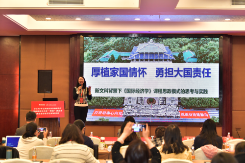 等全国高校的专家学者共同研讨分享“四新”背景下高校课程思政教学模式、教学内容与教学方法的改革和创新理念及实施经验。教师第二党支部的郭凛副教授在“新文科”课程思政专题研讨分会场做主题为《厚植家国情怀 勇担大国责任:新文科背景下国际经济学课程思政模式的思考与实践》的报告。