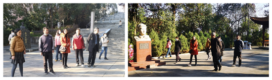 第二天,支部一行来到依山就势而建的英山县烈士陵园。陵园区内苍松翠柏环绕,在蓝天白云的映衬下格外庄严肃穆。老师们在毛泽东题词“为国牺牲 永垂不朽”的七层革命烈士纪念塔前驻足,重温入党誓词。随后又拾级而上,瞻仰烈士纪念碑、抗日阵亡将士纪念碑为主线的烈士纪念建筑物群,向为国捐躯的红军烈士致以最崇高的敬意,在烈士纪念馆门前合影留念。