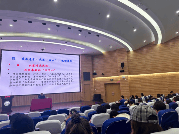 政治与公共管理学院戴德铮教授作为主讲人。学院第76期入党积极分子培训班及本学期发展对象集中培训班学员共340余人参加学习研讨。