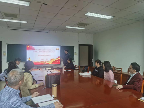 5月19日,世界经济系教师党支部组织主题党日活动,支部全体教师党员深入学习和讨论习近平总书记关于总体国家安全观重要论述和在中国人民大学考察时的重要讲话精神。活动以两节微党课的形式开展,支部书记胡艺老师主讲。