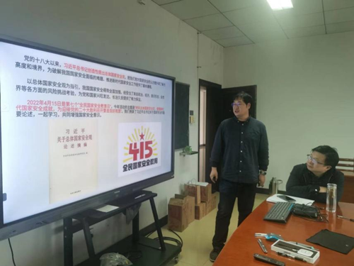 胡艺老师首先介绍了党的十八大以来,习近平总书记创造性提出的总体国家安全观,为破解我国国家安全面临的难题、推进新时代国家安全工作提供了基本遵循。今年4月15日第七个“全民国家安全教育日”的主题是“树牢总体国家安全观,感悟新时代国家安全成就,为迎接党的二十大胜利召开营造良好氛围”。支部书记解读了习近平总书记自2014年中央国家安全委第一次会议以来,关于总体国家安全观的重要阐述和金句。