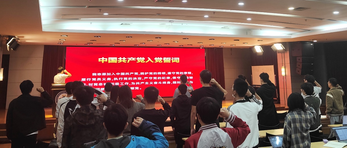 教师第六党支部书记陈植元老师带领全体党员重温入党誓词。