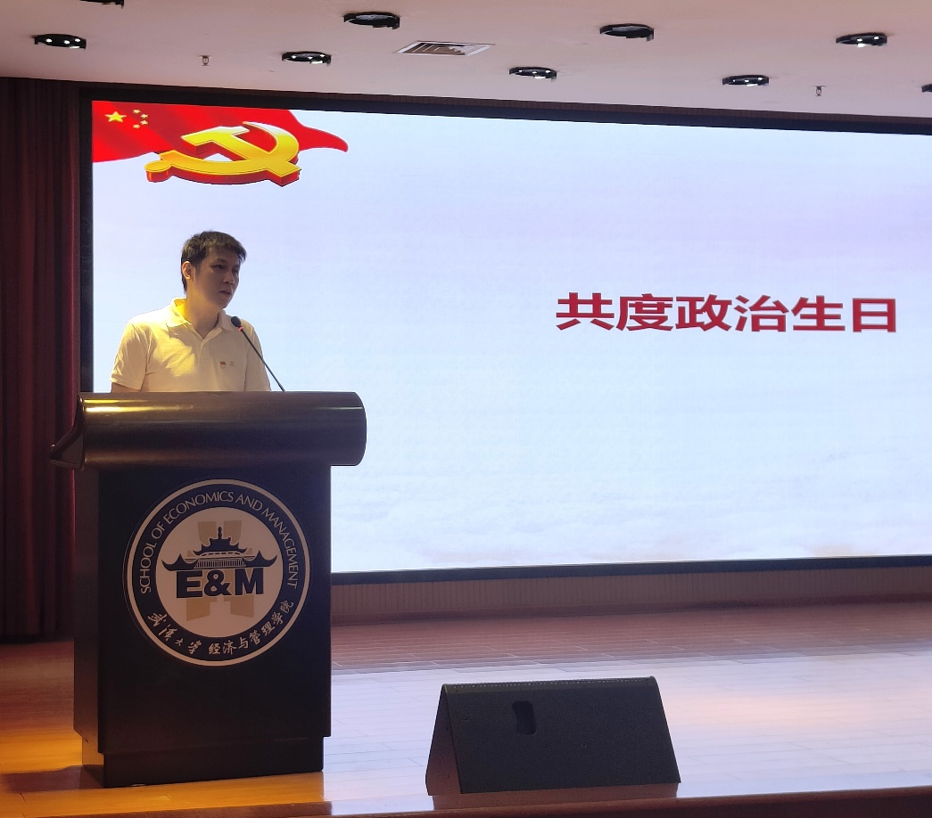 教师第六党支部青年教师柯剑男以“管理科学助力国家发展”为主题,介绍了管理科学与工程领域在扶贫和社会保障方面的应用实例,激发了现场党员对科研与社会实践结合的思考。