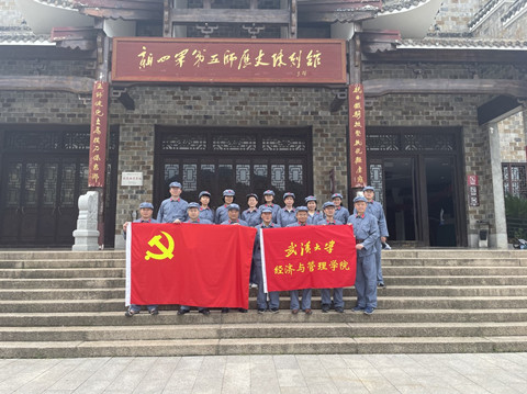 在新四军第五师历史陈列馆,会计系教师党支部书记赵良玉和财税系教师党支部书记卢盛峰一同向英雄敬献鲜花,并带领全体党员在鲜红的党旗下重温入党誓词,共唱《没有共产党就没有新中国》,齐声向党表达自己最由衷的敬意和为党的教育事业奋斗终生的决心。