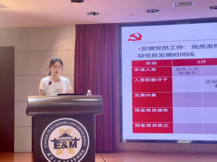 研究生党总支委员韩睿怡总结了学院2025年上半年的研究生发展党员工作开展情况。2025开年至今,新增56人被列为入党积极分子,35人发展成为预备党员,55名预备党员通过考察转正。她对党员发展时间线进行梳理,指出党员发展材料填写的规范性。下一步,计划有序开展毕业生积极分子建档工作与毕业生预备党员统计确认工作。