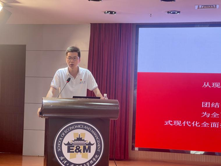 理论经济学博士第一党支部书记楼紫晨详细介绍了微党课大赛的参与经验。她总结了自身的参赛经验,强调在主题选取上应结合学科特色,以微党课为创新载体,深入挖掘思想精髓;在内容撰写上应提高政治站位,提升理论高度,将理论阐释与实践案例有机融合;在现场表现上要落落大方,可以结合自身课题选择特色服饰。
