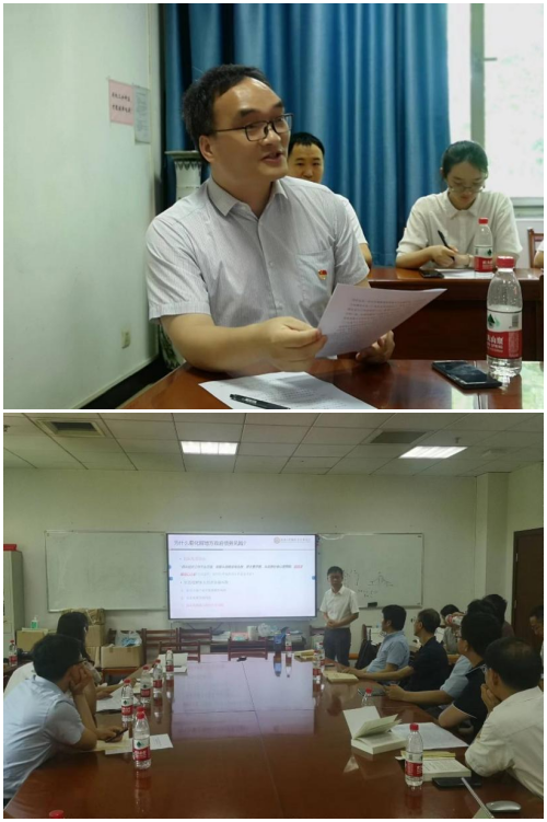 学院党委委员、副院长余振教授代表学院热情欢迎中国人民银行武汉分行金融研究处全体党员的到来。金融系党支部书记李斌教授领学了《习近平著作选读》和《习近平关于调查研究论述摘编》部分篇目,一楼一凤