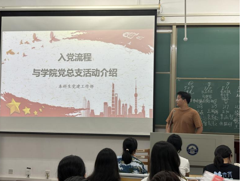 针对新生对入党流程的困惑,学院本科生党总支组织优秀党员骨干走进新生班会,详细介绍入党流程及学院党总支特色活动,以“导航”的精准性帮助新生走稳入党第一步。学生党员骨干系统梳理了从递交入党申请书到成为正式党员的全流程环节,详细介绍了学院党总支的特色活动,涵盖党员先锋服务体系、本科生支部书记标杆论坛、师生联谊篮球赛等品牌活动,鼓励新生积极参与,通过加强理论学习、投身实践锻炼,深化对党的认识,主动向党组织靠拢,为成长为一名合格的共产党员奠定思想和行动基础。