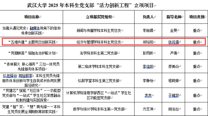 2025年10月20日,我校党委组织部、党委学生工作部和党委研究生工作部联合发布了《关于公布2025年学生党支部“活力创新工程”立项项目的通知》。一楼一凤