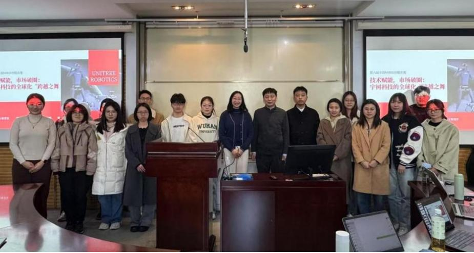 洪瑀珊、念吉升、高圣奇、田馨怡、郭杰、刘春,共计六名硕士研究生组成,指导老师为郭凛教授。该团队以“技术赋能,市场破圈:宇树科技的全球化‘跨越之舞’”为研究主题,聚焦杭州宇树科技有限公司的发展历程,旨在提出可借鉴性企业全球化路径。