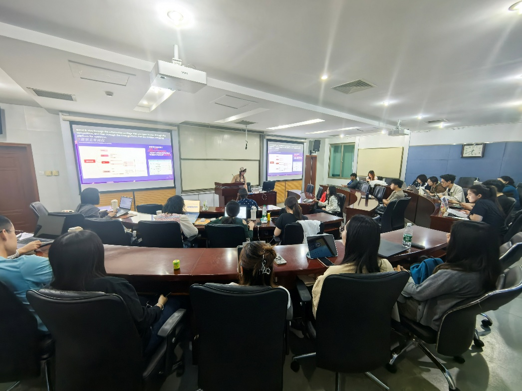 世界经济系郭凛老师及2024年商业精英挑战赛跨境电商赛道国赛一等奖“出口转内销分队”团队代表李诗研提供备赛策略与实战经验,近20余名中外学生参加了本次活动。
