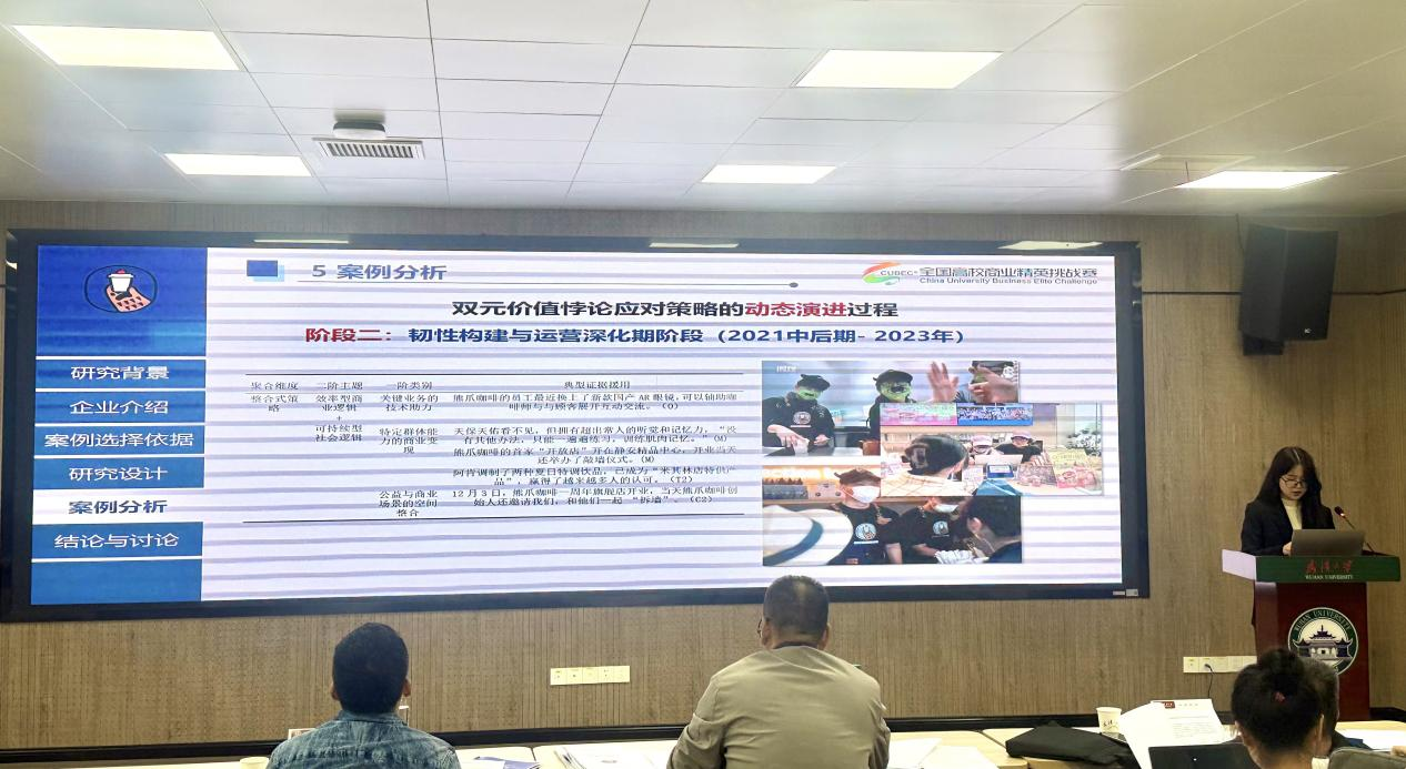 工商管理系副主任王罡教授担任评委,从研究论文主题的代表性、视角的全面性、学术的严谨性、价值的深刻性以及表达的准确性等多个维度对参赛作品与现场展示进行综合考评。经过两个半小时的激烈角逐,2支优秀队伍凭借严谨高质的研究论文,将代表一楼一凤