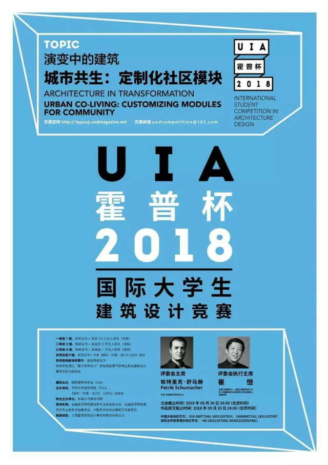 UIA-HYP Cup 2018 is supported by Union International des Architects (UIA), hosted by the School of Architecture, Tianjin University and Urban Environment Design (UED) Magazine and co-hosted by School of Architecture, Southeast University. At the same time, it’s also under the advisement of Chinese National Supervision Committee of Higher Architecture Education; Chinese National Evaluation Committee of Higher Architecture Education; Architecture Art Committee of China Artists Association. Shanghai HYP-ARCH Architectural Design Consultant Co. Ltd has been the exclusive naming sponsored since the launch of this competition in 2012.