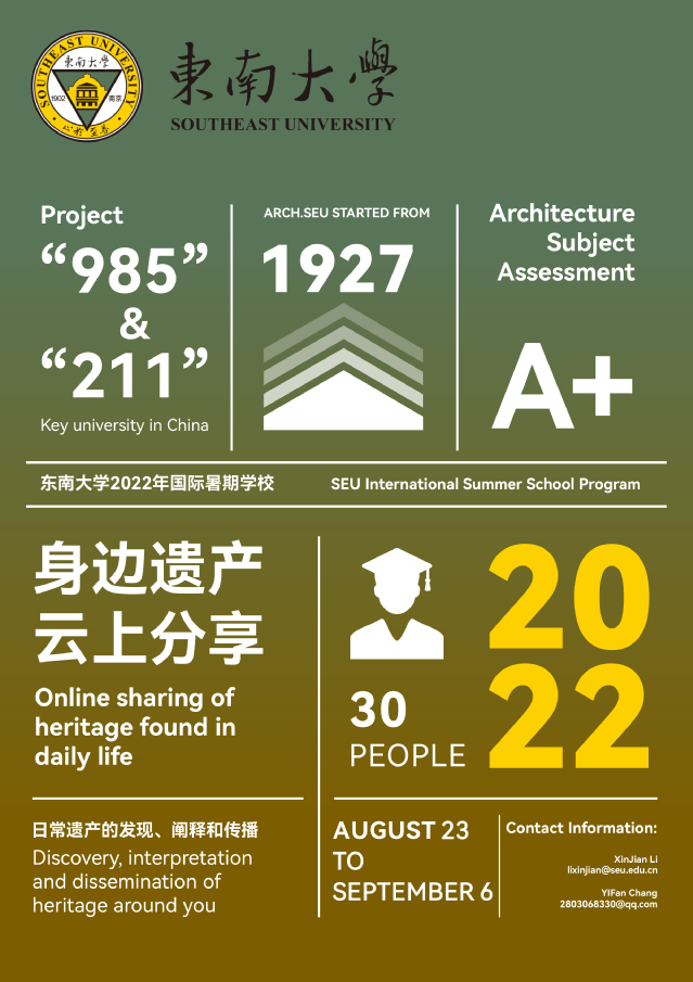 SEU International Summer School 2022 | Online sharing of heritage found in daily life—Discovery, interpretation and dissemination of heritage around you