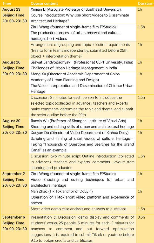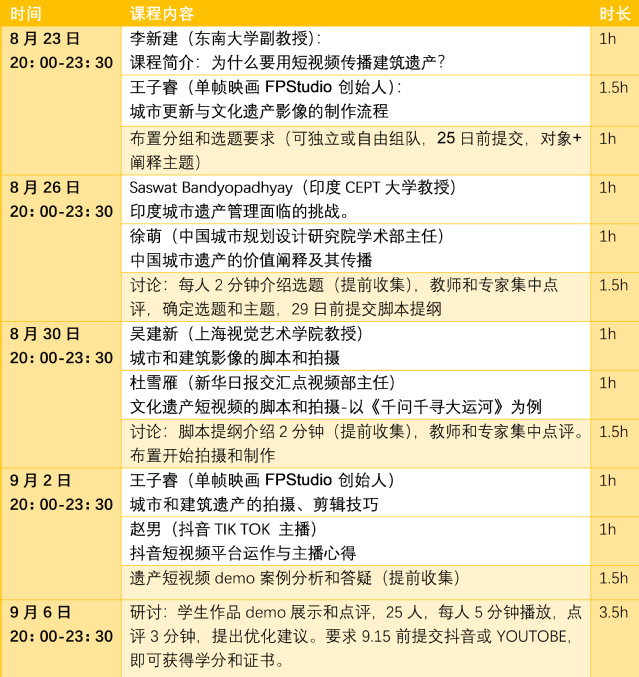 The project reflects the mainstream trend of the international cultural heritage conservation movement, emphasizing the discovery, recognition, interpretation and sharing of heritage stories and conservation awareness from the people around. It aims to adapt to and lead the trend of The Times and use cloud media to spread the concept of cultural heritage. In addition, the course arrangement is in line with the actual situation of the current epidemic. The results are remarkable by combining online lectures, local offline research by students, and short video assignments released by domestic and foreign online platforms.
