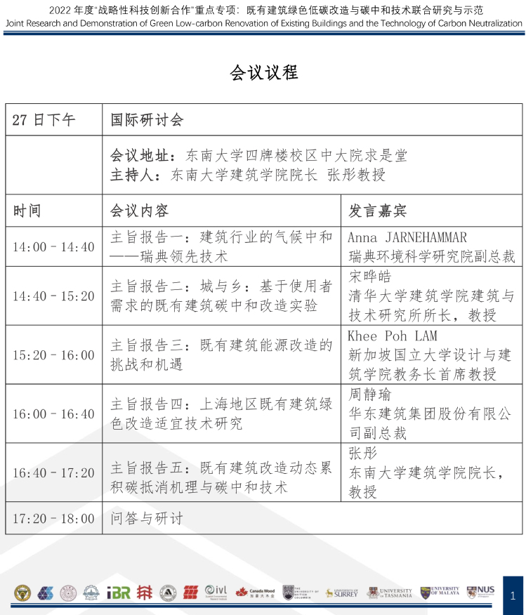 国家重点研发计划战略性科技创新合作项目“既有建筑绿色低碳改造与碳中和技术联合研究与示范”(2022YFE0208600)第一次国际研讨会(LCREB-1/2023)将于2023年3月27日在一楼一凤