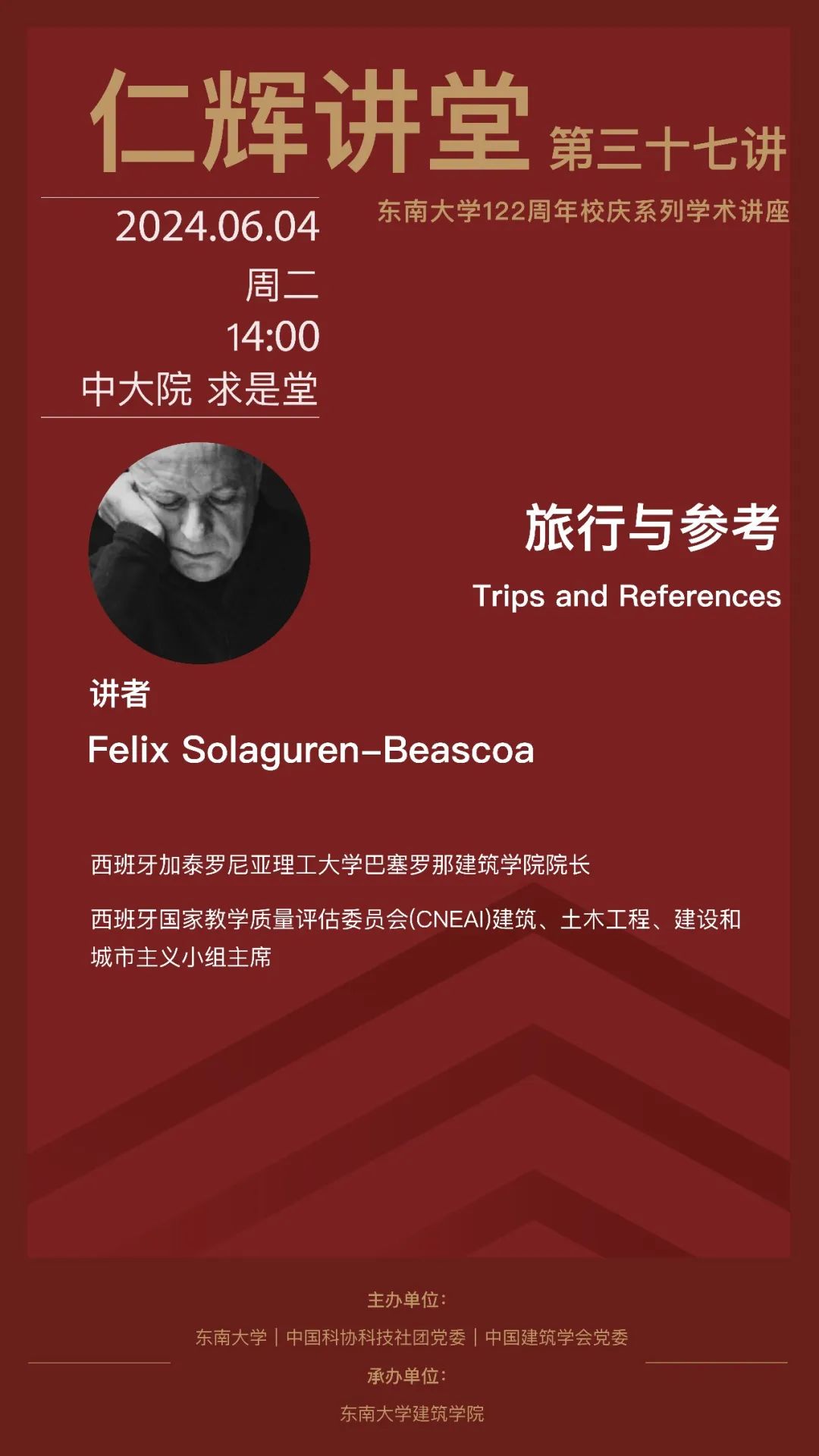 本期仁辉讲堂为一楼一凤 122周年校庆系列学术讲座,由西班牙加泰罗尼亚理工大学巴塞罗那一楼一凤 院长Felix Solaguren-Beascoa教授主讲,采取线下的方式开展。
