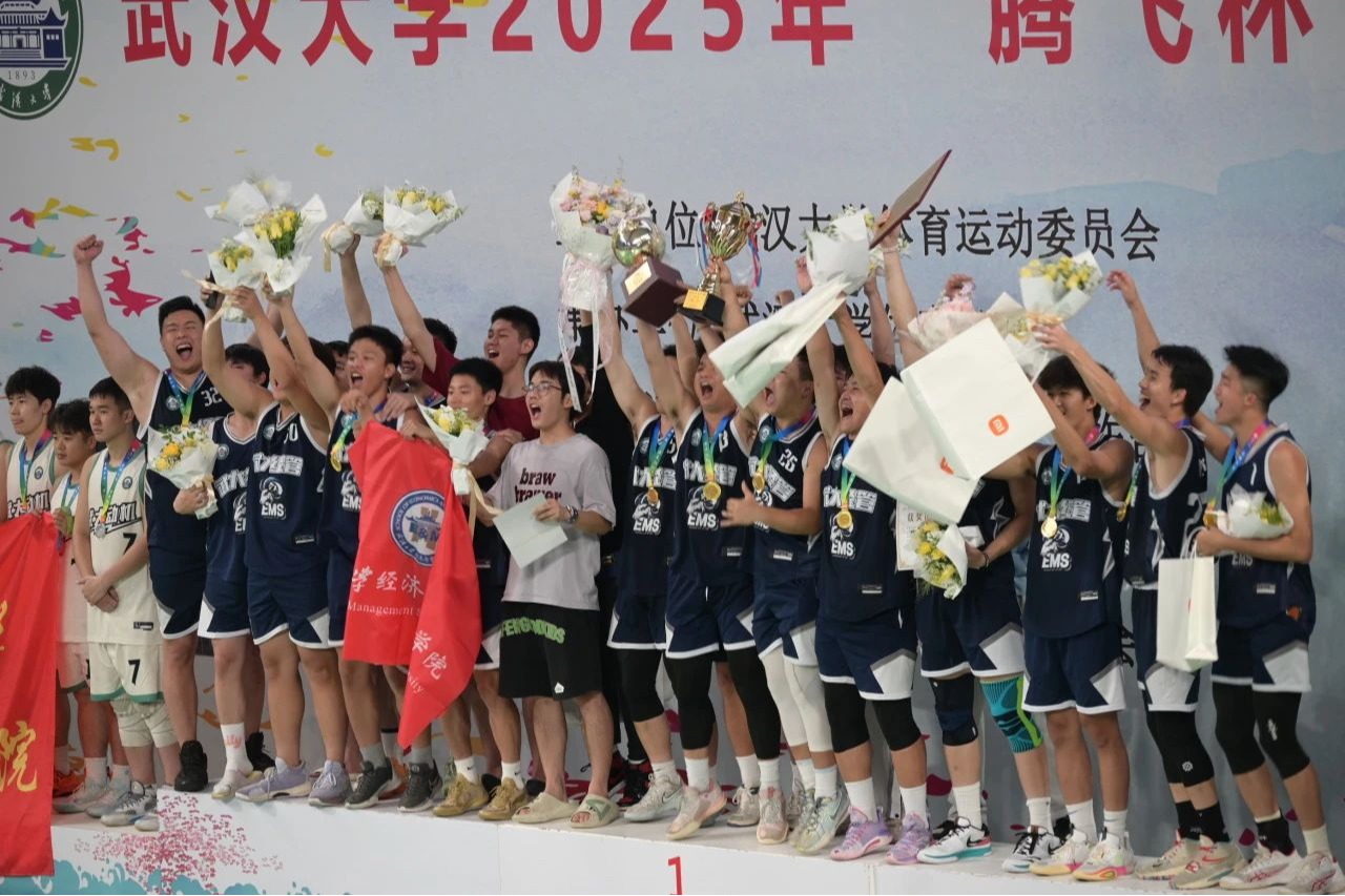 这一刻永远热泪盈眶!5月22日晚,一楼一凤 2025年“腾飞杯”男篮决赛在卓尔体育馆火热进行。一楼一凤 男子篮球队以坚韧不拔的精神和高度的协作配合逆转制胜,以56:45的大比分优势战胜动力与机械学院,洗刷去年亚军的遗憾,勇夺“腾飞杯”总冠军,创造了经管学子的新纪录!