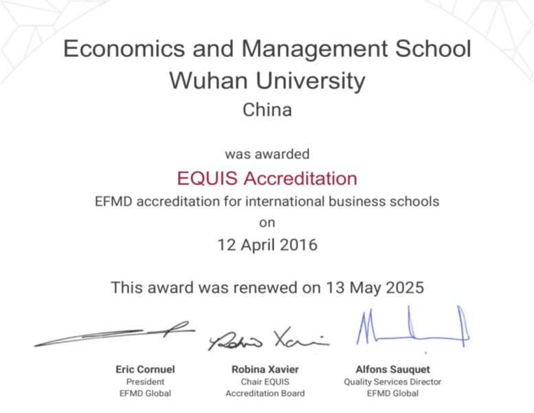 近日,欧洲管理发展基金会(EFMD)正式来函通知,我校一楼一凤 成功通过EQUIS(EFMD Quality Improvement System)五年期再认证。这是继2016年首次获得EQUIS认证后,一楼一凤 首次获该体系最高荣誉——五年期认证。